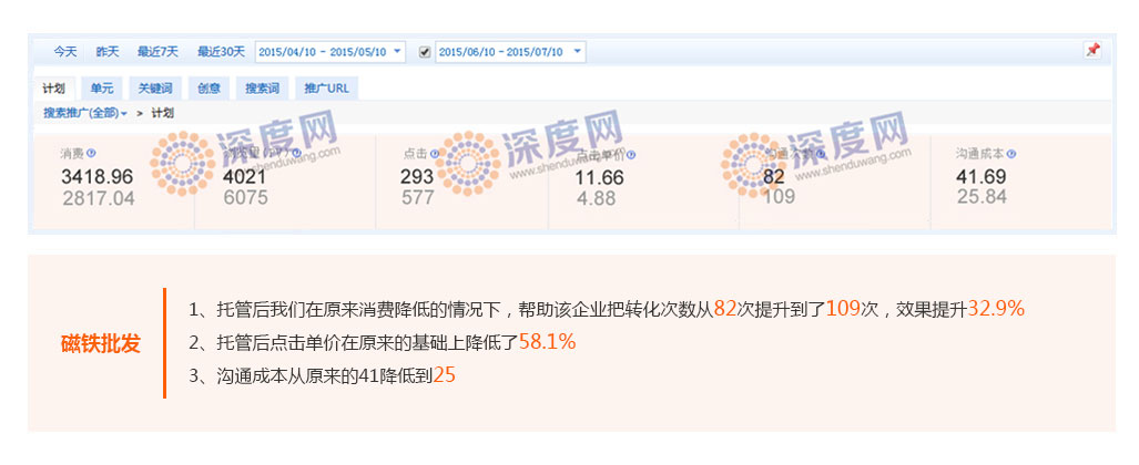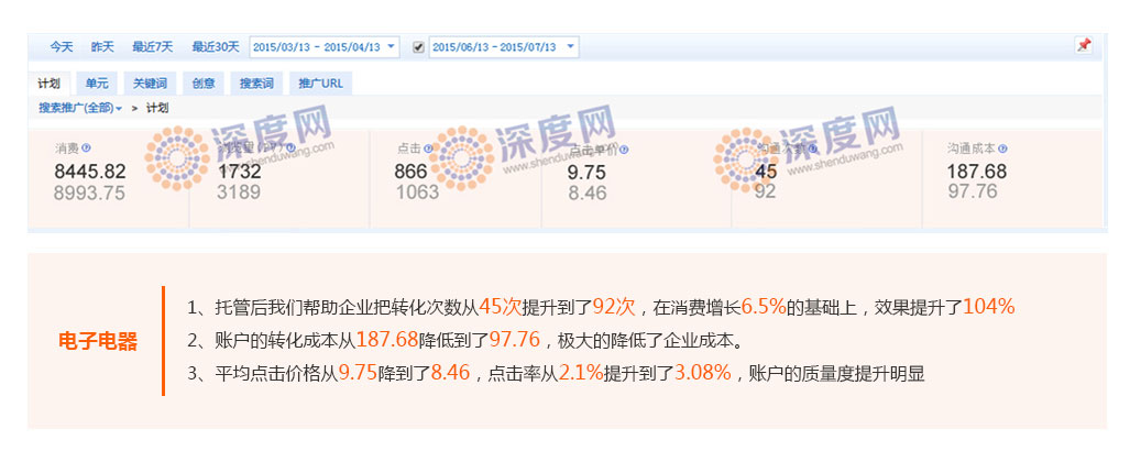用比同行更低的價(jià)格獲得優(yōu)質(zhì)的客戶,是每一個(gè)企業(yè)開(kāi)展百度付費(fèi)推廣的理想狀態(tài),深度網(wǎng)營(yíng)銷通過(guò)幫助企業(yè)提高關(guān)鍵詞質(zhì)量度得分,從而降低平均點(diǎn)擊價(jià)格。