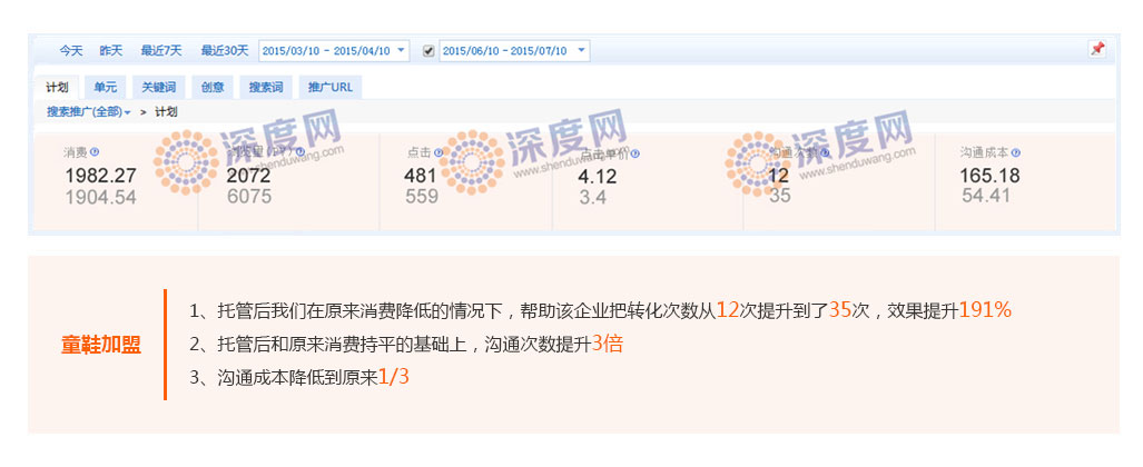 深度網(wǎng)營(yíng)銷已經(jīng)幫助大量企業(yè)在百度競(jìng)價(jià)廣告投入不變的情況下把咨詢總量(訂單總量)在原有基礎(chǔ)上提升數(shù)倍。